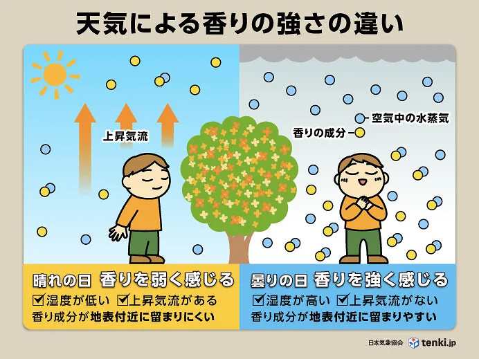 そんな金木犀、晴れの日より曇りの日の方が香りを感じやすいらしいです。