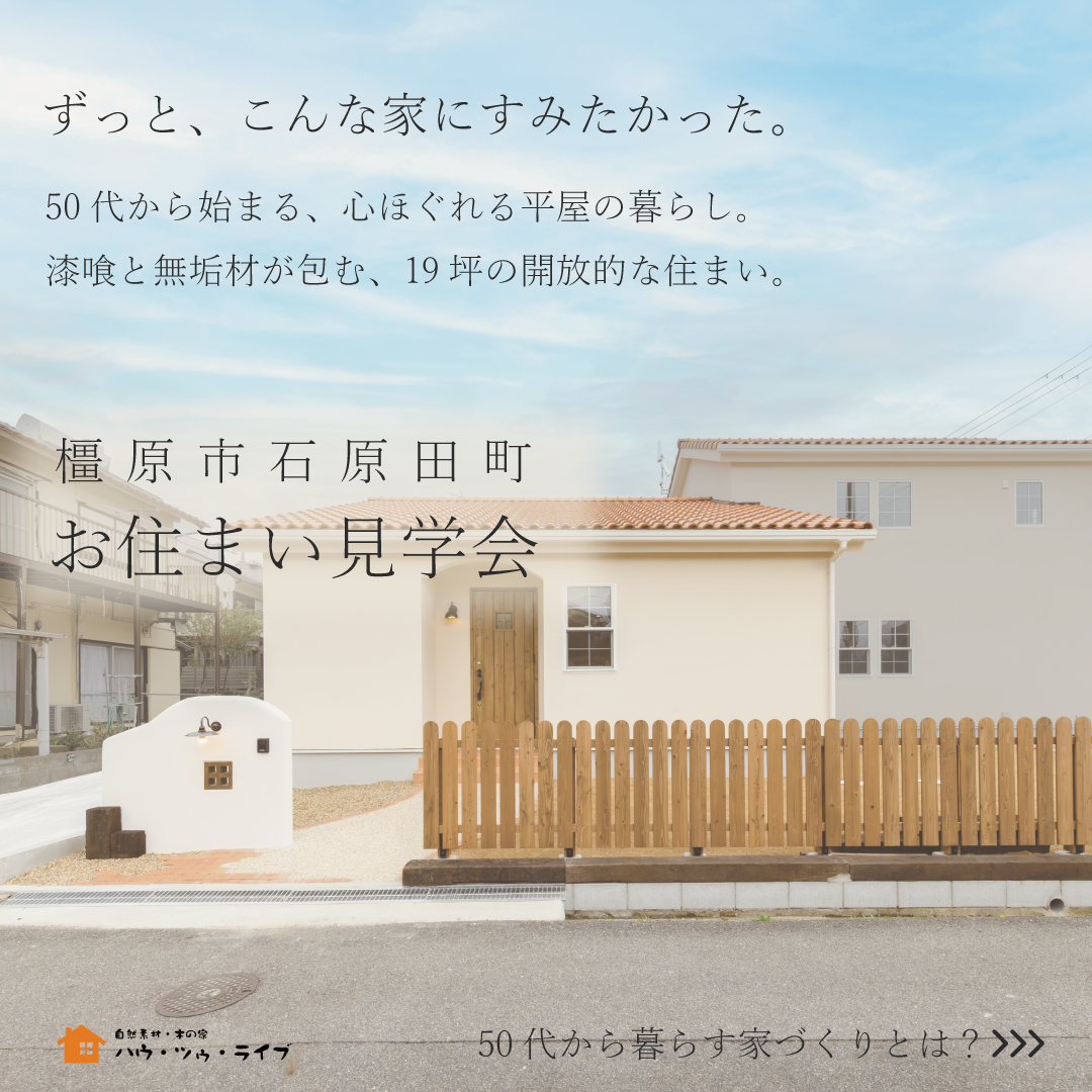 橿原市石原田町の平屋。住み心地や家づくり当時のお話が聞ける見学会です。